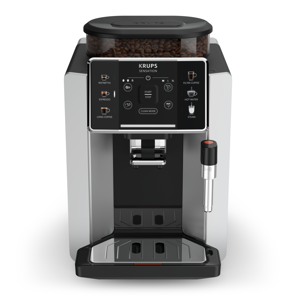 Indiferent cat de complex pare un espressor, poti sa spui adio oricaror indoieli cu Krups Sensation, datorita tehnologiei Barista Inside care optimizeaza fiecare pas al procesului de preparare. Cu functii convenabile precum panoul tactil, retete personalizabile si alerte luminoase, savurarea dozei zilnice de cafea nu a fost niciodata mai usoara. Cel mai bun aspect dintre toate? Lasa masina sa faca toata munca grea cu programul de curatare complet automat.
