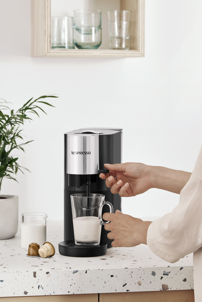 Cu noul Nespresso Atelier puteti deveni un adevarat artizan al retetelor de cafea cu lapte. Datorita tehnologiei inovatoare, retetele dumneavoastra preferate sunt preparate direct in ceasca, printr-o simpla atingere de buton. Creati, amestecati si dati orice forma retetelor preferate de cafea, dupa bunul plac, cu Nespresso Atelier. Avand o forma ergonomica, ingusta si finisaje din otel inoxidabil, acest espressor nu e doar atragator, ci aduce cu sine si o noua tehnologie ce va permite sa spumati orice tip de lapte - atat de origine animala, cat si de origine vegetala.