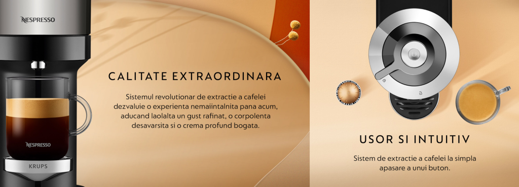Noul sistem Vertuo este aici. Cu ajutorul espressorului Vertuo Next, facem trecerea spre idealuri mai indraznete - de la cantitatea cafelei, pana la tehnologia de extractie.