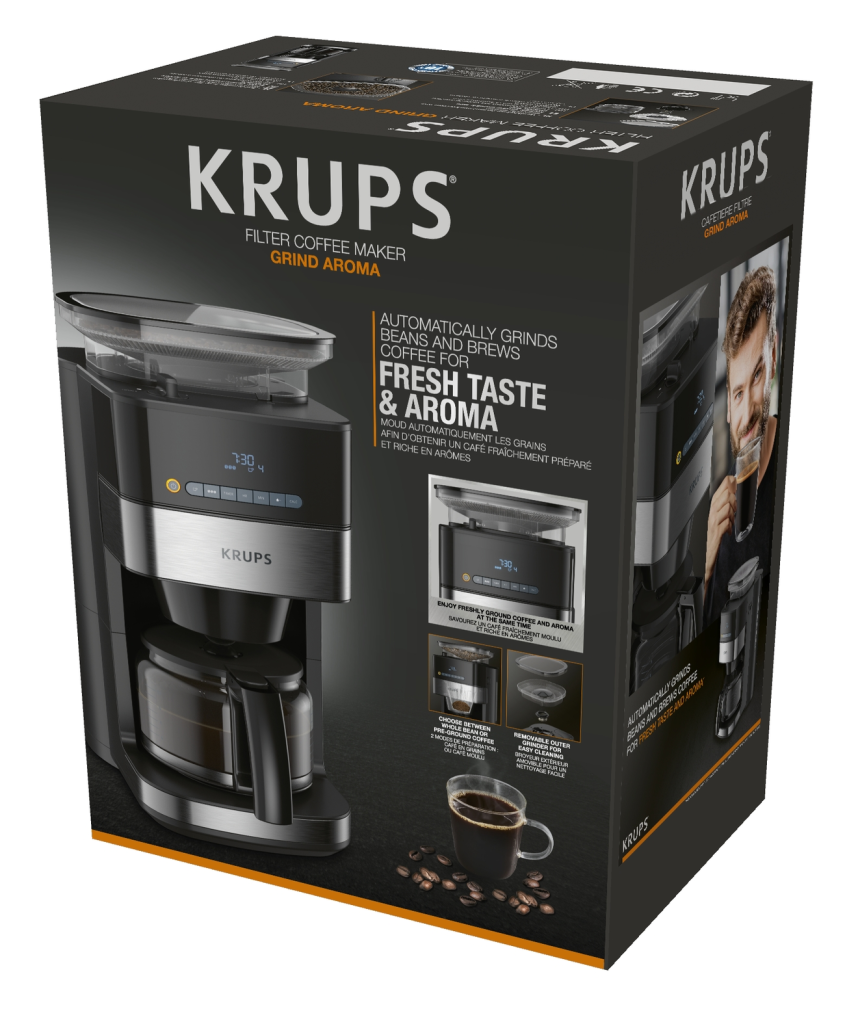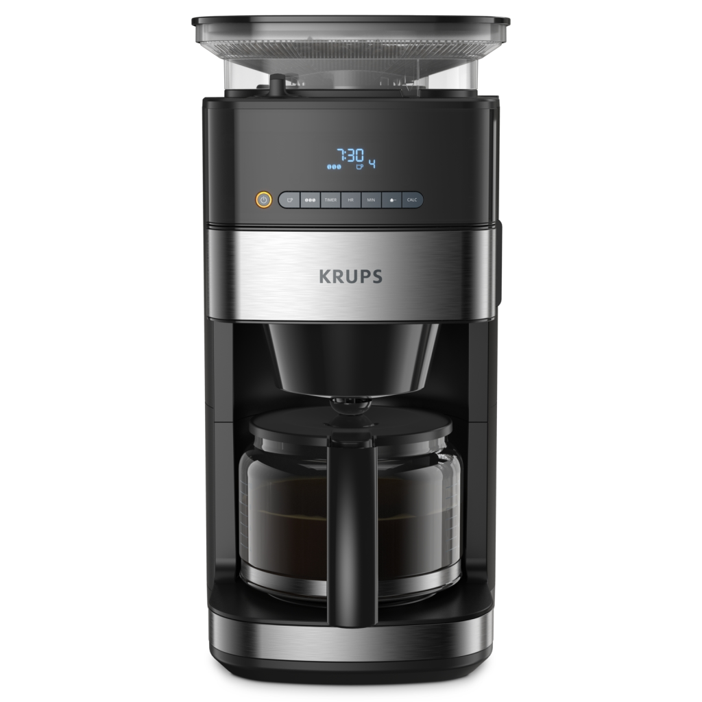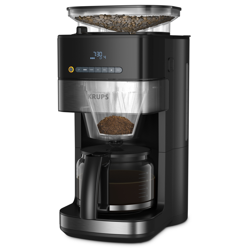 Cafetiera Krups Grind and Brew: Macină și prepară cafeaua automat pentru gust mereu propaspăt și o aromă desăvârșită.